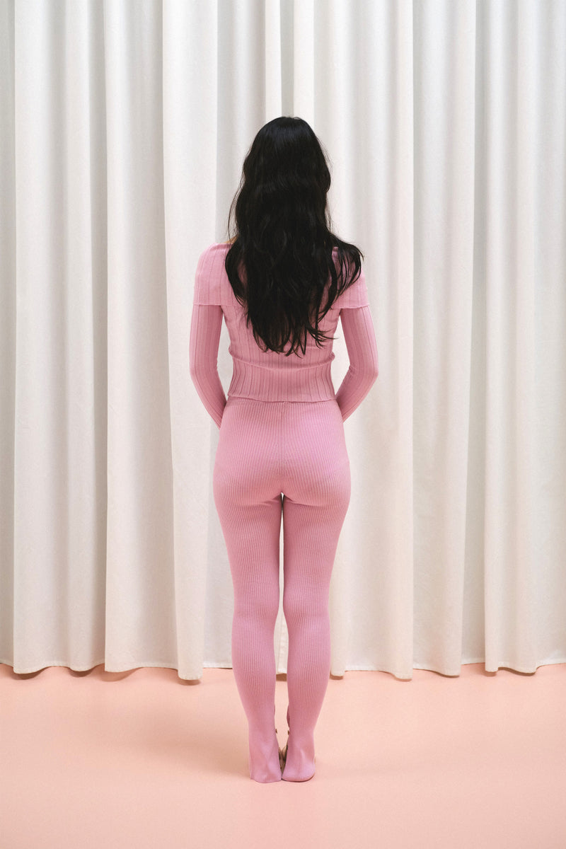 RIBBED HIGH WAISTED BUTTONED VISCOSE LEGGINGS