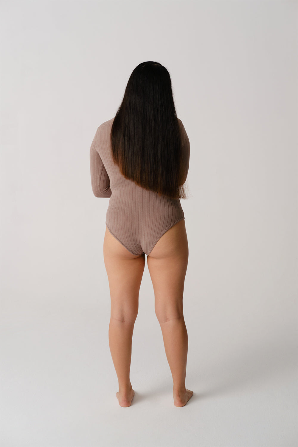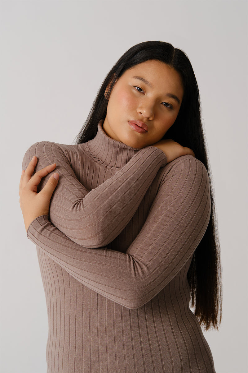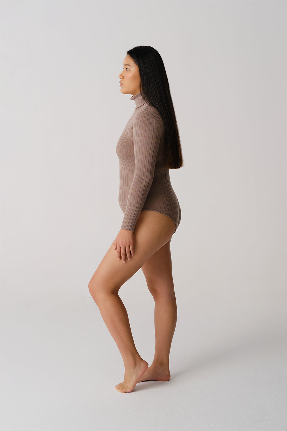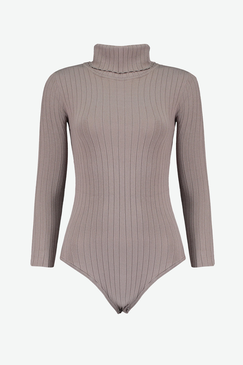 RIBBED LONG SLEEVE ROLL-NECK BODYSUIT