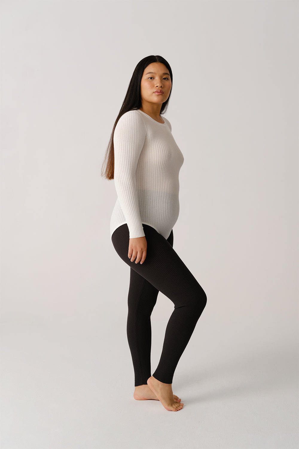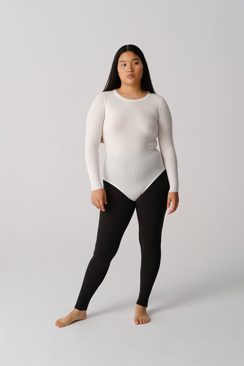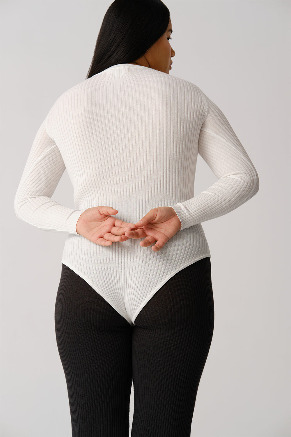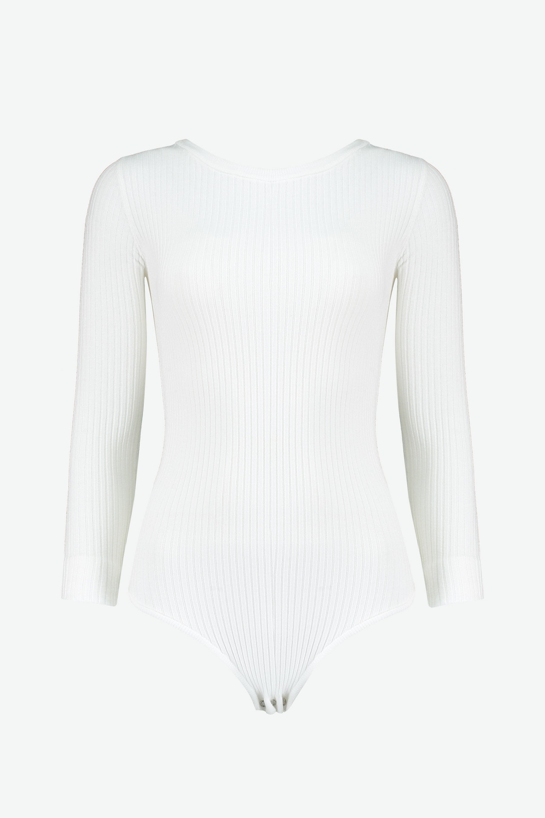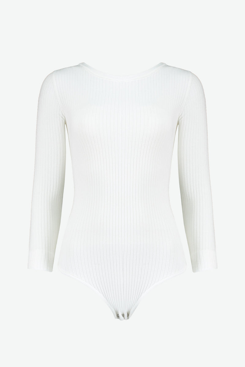 RIBBED LONG SLEEVE ROUND NECK VISCOSE BODYSUIT