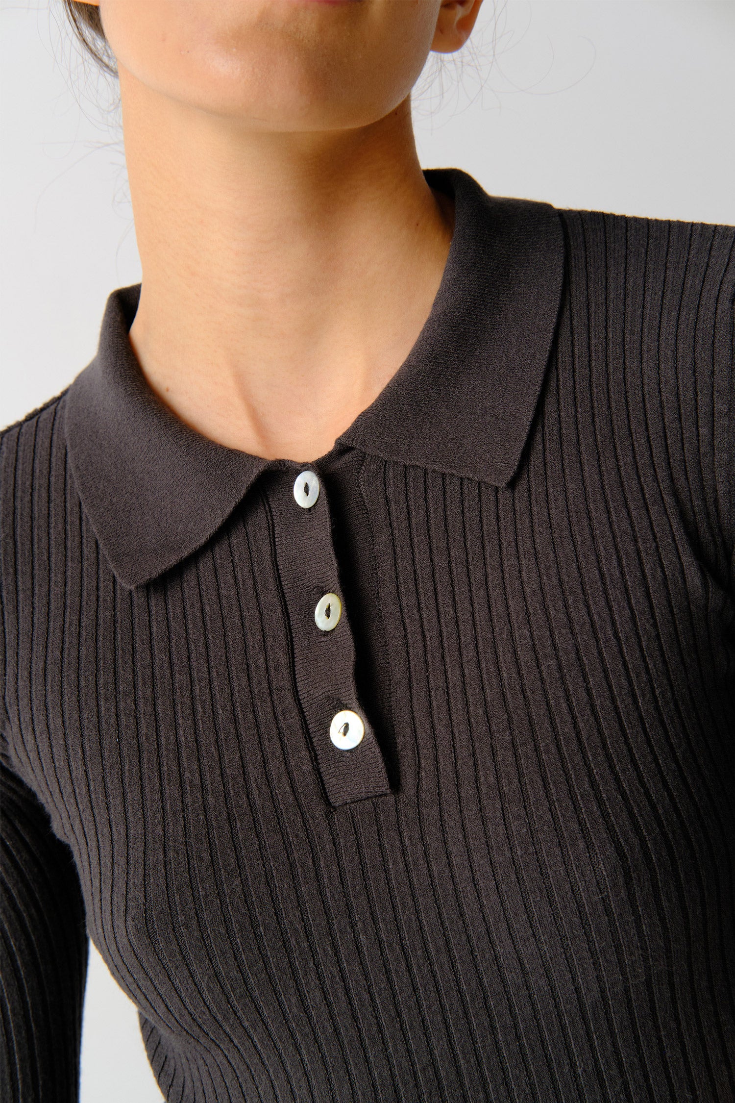 Our best-seller bodysuit, this revisited design offers a sporty yet elevated option for your casual looks. Detailed with three small buttons ending in a polo collar. Our Tennis bodysuit is the perfect classic and timeless silhouette for you to treasure.