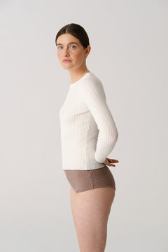 A second skin ally for winter days. Crafted in a rib texture using a sumptuous blend of responsibly-sourced viscose, this soft knitted top is cut in a slim, slightly cropped fit. Matching leggings available. The Perfetto top with its tight fit is your ideal sophisticated basic for colder days and nights.