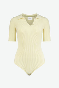 Our best-seller bodysuit, this revisited design offers a sporty yet elevated option for your casual looks. Detailed with three small buttons ending in a polo collar. Our Tennis bodysuit is the perfect classic and timeless silhouette for you to treasure.