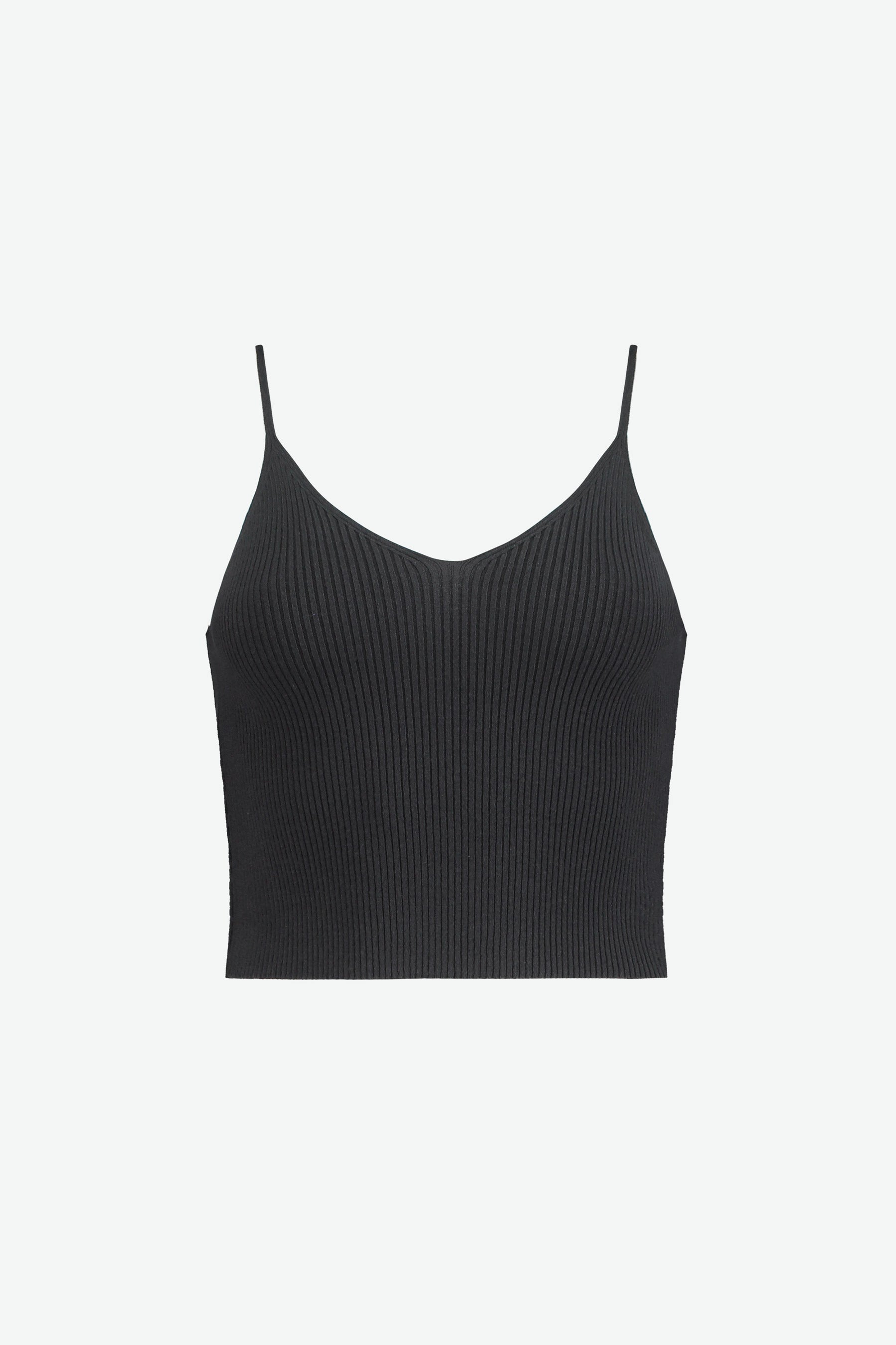 Your new best friend. The Carrie is a cropped top with non-adjustable spaghetti straps featuring a symmetric design.