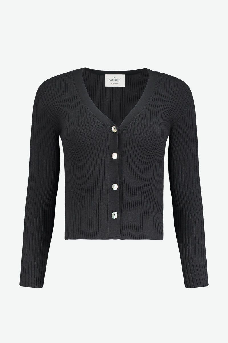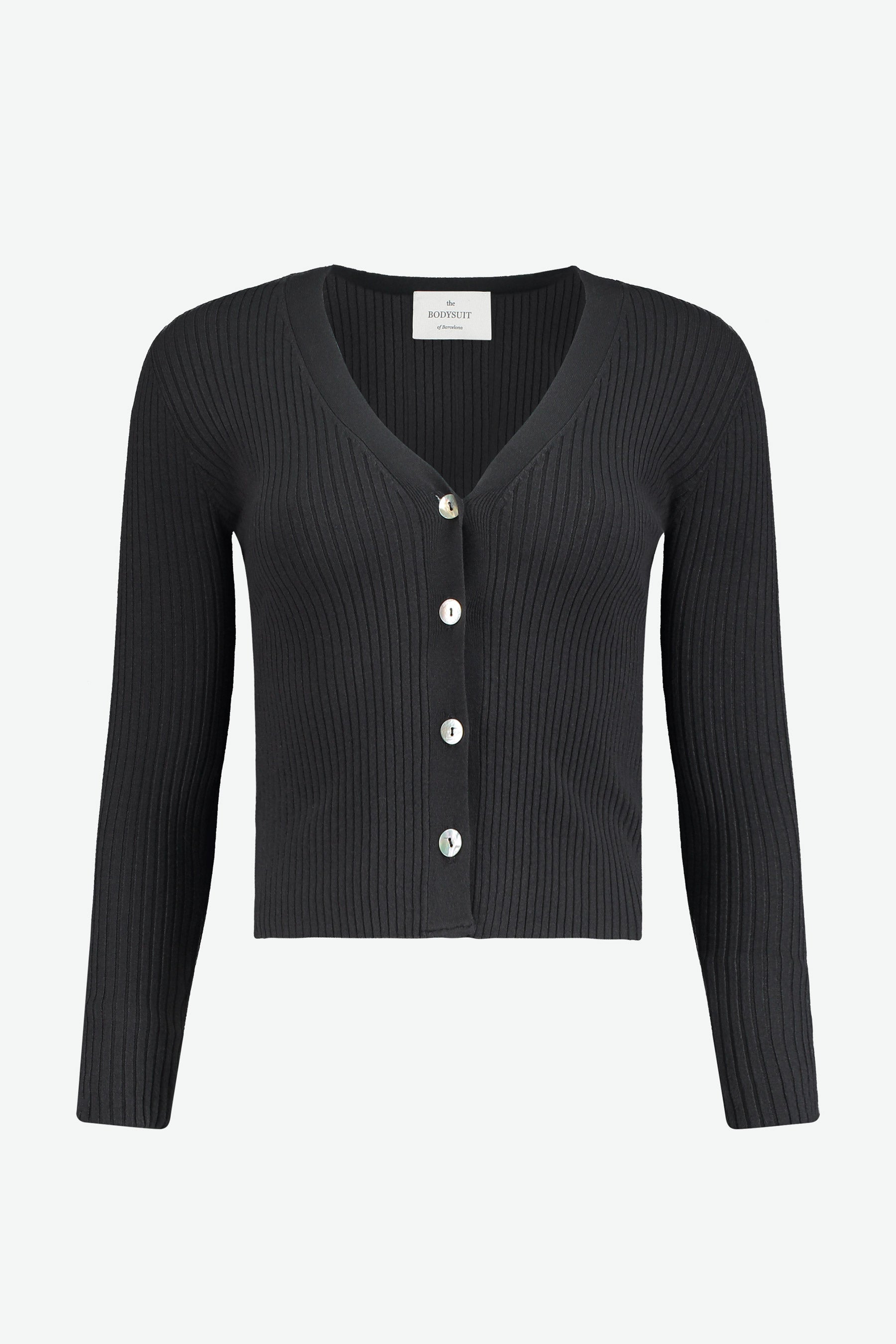RIBBED LONG SLEEVE V NECK CARDIGAN